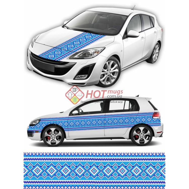Купить наклейку на авто с вышиванкой. Вышиванка голубая с синими элементами с доставкой по Украине.
