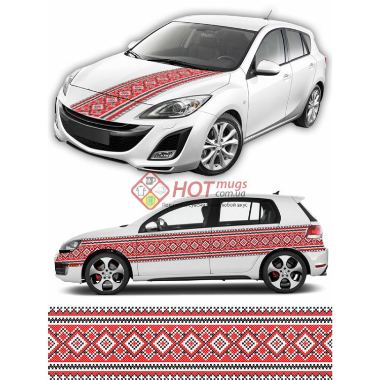 Купить наклейку на авто с вышиванкой. Вышиванка красная с черным с доставкой по Украине.