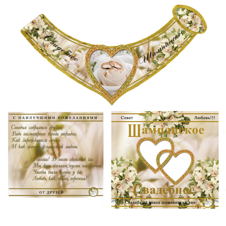 Свадебные наклейки на бутылку шампанского, вина, коньяка...