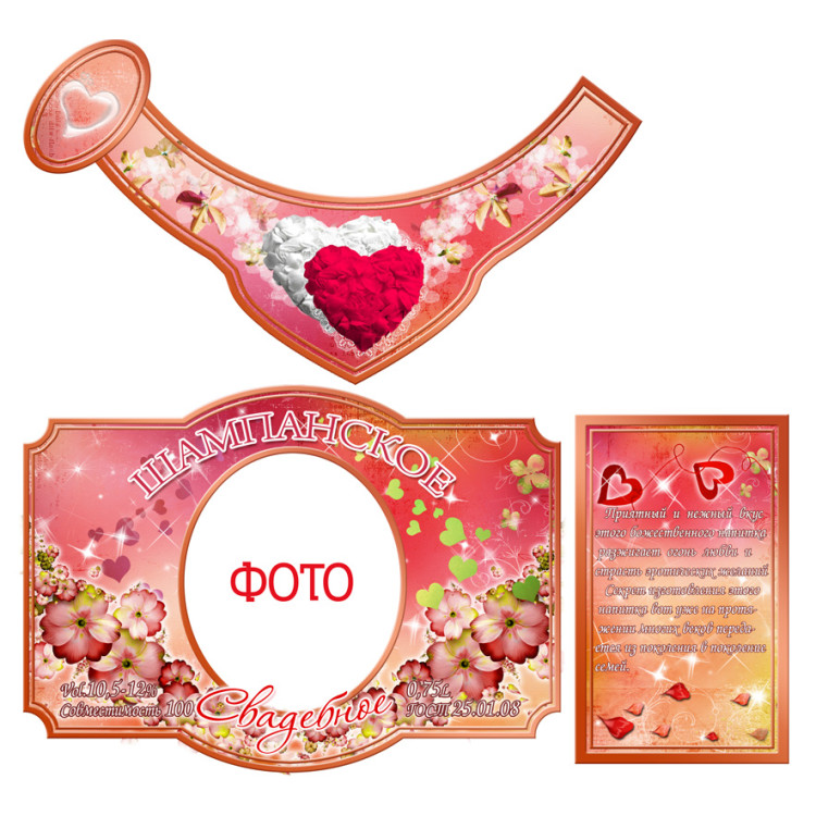 Свадебные наклейки на бутылку шампанского, вина, коньяка...