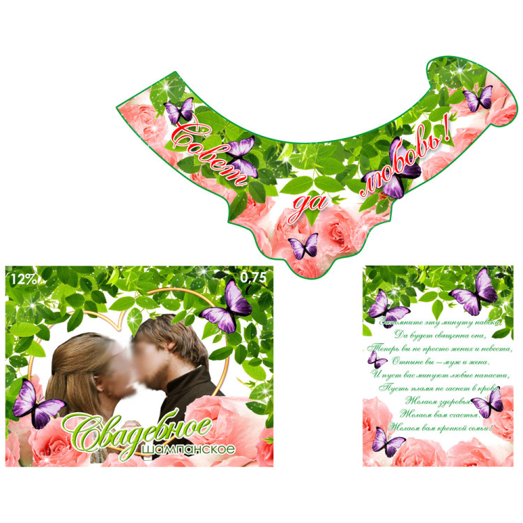 Свадебные наклейки на бутылку шампанского, вина, коньяка...