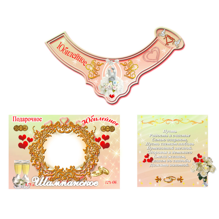 Свадебные наклейки на бутылку шампанского, вина, коньяка...