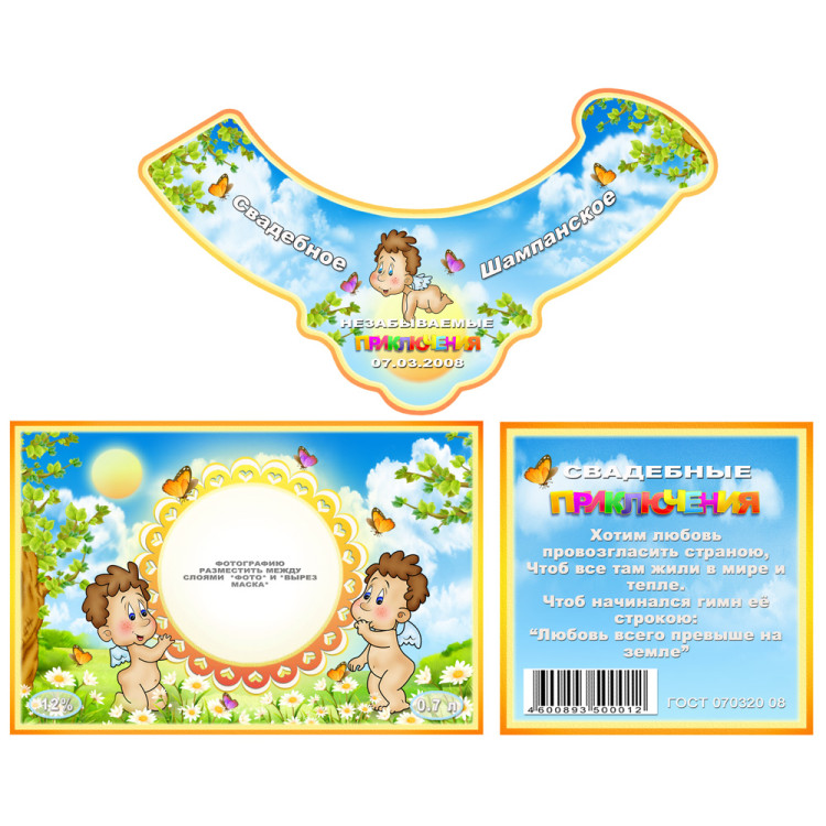 Свадебные наклейки на бутылку шампанского, вина, коньяка...