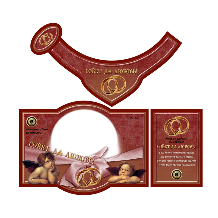 Свадебные наклейки на бутылку шампанского, вина, коньяка...