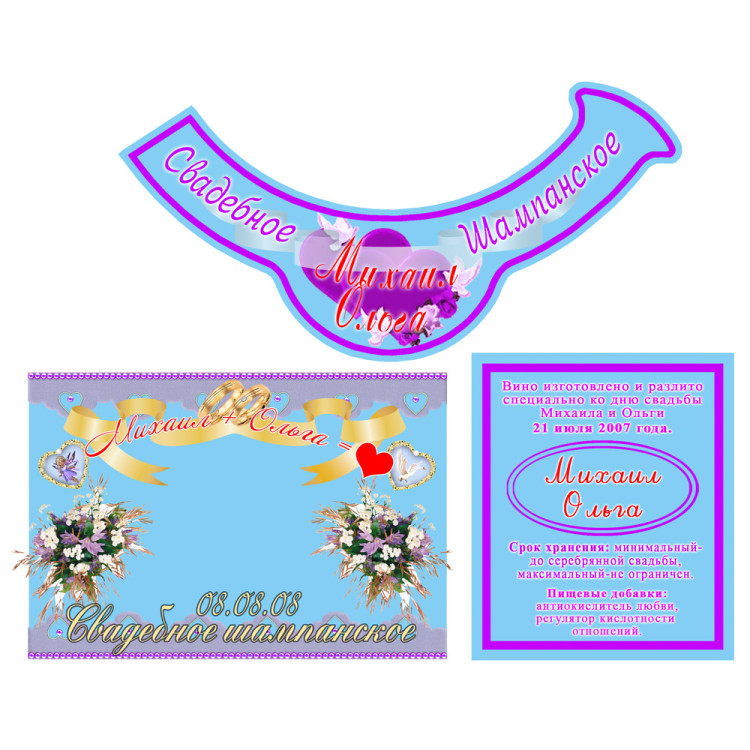 Свадебные наклейки на бутылку шампанского, вина, коньяка...