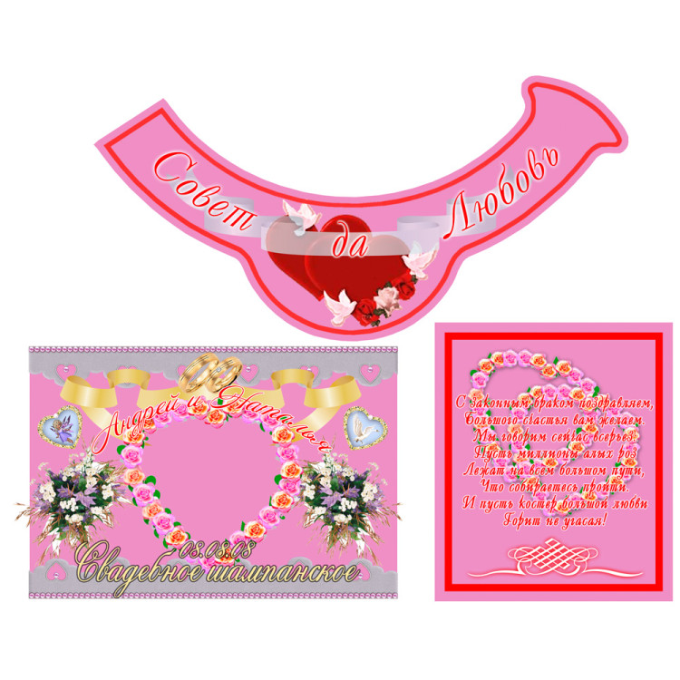 Свадебные наклейки на бутылку шампанского, вина, коньяка...