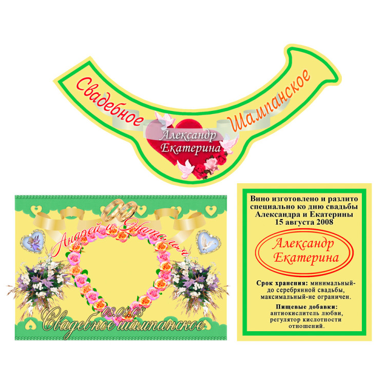 Свадебные наклейки на бутылку шампанского, вина, коньяка...
