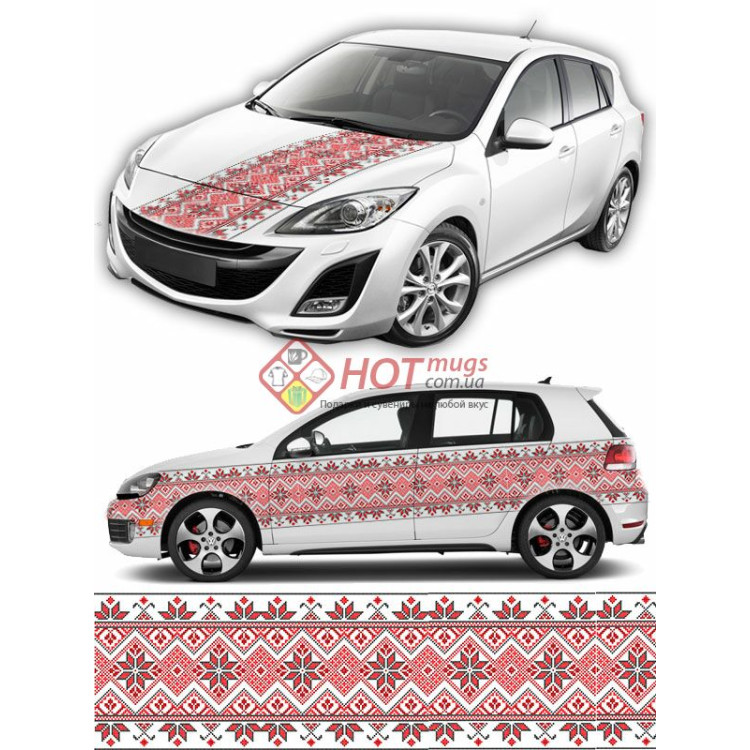 Наклейка на авто, вышиванка красная белая с черными элементами, патриотическая символика, купить вышиванку в Украине.